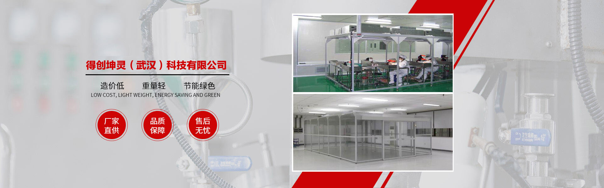得創(chuàng)坤靈成立于2010年6月,專業(yè)從事食品無菌車間、GMP車間、電子無塵車間、食品醫(yī)藥包裝車間、醫(yī)療器械車間、潔凈棚、土建工程簡易房、無菌實驗室、組合式空調(diào)機組等項目的設(shè)計、裝修、施工、調(diào)試、安裝為一體的凈化工程公司,承接十萬級、萬級、千級、到百級的凈化車間、無塵車間、無塵室、潔凈廠房、潔凈室工程的改造與建設(shè)。 作為中國潔凈室系統(tǒng)工程及設(shè)備制造高品質(zhì)、專業(yè)化的代表,得創(chuàng)秉承“追求完美品質(zhì)、超越客戶期望”的理念,通過對客戶生產(chǎn)環(huán)境的深入研究及多年的工程實踐,積累了豐富的潔凈室空調(diào)凈化系統(tǒng)及節(jié)能優(yōu)化設(shè)計、項目管理及施工經(jīng)驗,綜合實力始終處于業(yè)界領(lǐng)先地位。 公司資質(zhì)齊全,包括裝飾裝修工程二級、機電安裝二級、電子與智能化二級、消防工程二級、環(huán)保工程二級;擁有多名高級工程師及暖通設(shè)計工程師,有著醫(yī)藥凈化工程設(shè)計、食品無菌食設(shè)計、電子無塵車間設(shè)計經(jīng)驗,長年與設(shè)計院有著良好的合作和溝通關(guān)系。公司多年專業(yè)從事凈化工程安裝業(yè)務(wù),擁有數(shù)次在全國各地有著豐富安裝經(jīng)驗的安裝工程隊伍,在大型管道及彩板安裝方面有著豐富的安裝經(jīng)驗和先進(jìn)的現(xiàn)場管理體系。 公司產(chǎn)品廣泛服務(wù)于電子、光電、微電子、光纖光纜、精密機械、生物制藥、食品飲料、航空航天等眾多領(lǐng)域。我們始終以技術(shù)為中心、以創(chuàng)新為動力、以服務(wù)為己任。以一流的產(chǎn)品質(zhì)量,良好的售后服務(wù),參與到激烈的市場競爭中來,贏得客戶的支持與信賴。 隨著公司的持續(xù)發(fā)展、隊伍的日益壯大,公司將一如既往地堅持"以客戶為中心"的理念,在激烈的市場競爭中迎頭奮進(jìn),以"創(chuàng)一流品牌、建一流企業(yè)"的品牌拓展戰(zhàn)略,面對機遇與挑戰(zhàn),開創(chuàng)一片嶄新的天地! 品質(zhì)成就夢想、秉承口碑相傳、得創(chuàng)凈化……